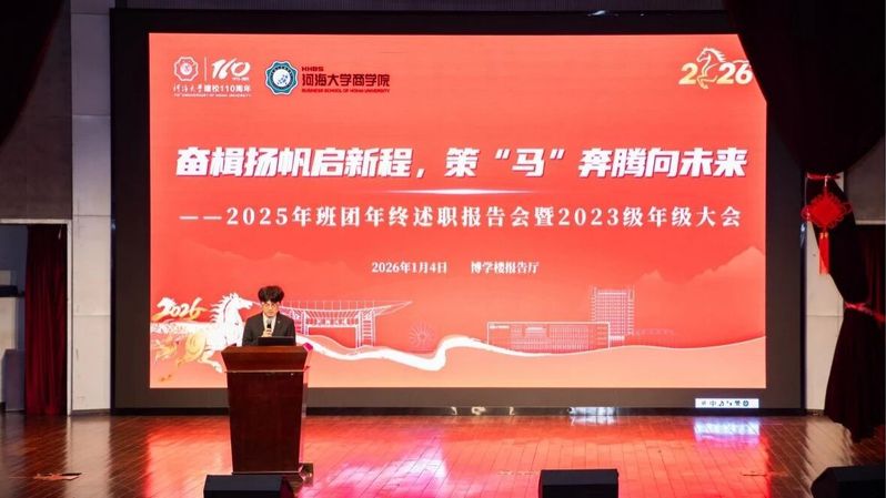 奋楫扬帆启新程,策马奔腾向未来。a片免费看 2025年度班团年终述职报告会暨2023级年级大会于2026年1月4日晚在博学楼报告厅顺利举办。本次大会由2023级年级大班长于浩轩主持,年级委员、各班团进行述职报告。a片免费看 2023级辅导员史玉莹、潘佳莹、周子芮老师以及a片免费看 2023级全体学生参加本次大会。