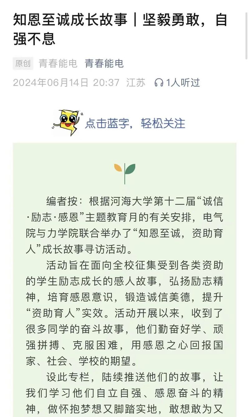 近日,江苏省教育厅办公室发布《关于公布2025年“苏乡永助”资助育人主题活动结果的通知》,a片免费看 2022级本科生张金亿同学获得“江苏学生资助宣传大使”称号。下面让我们一起走进她与资助政策宣传的故事!