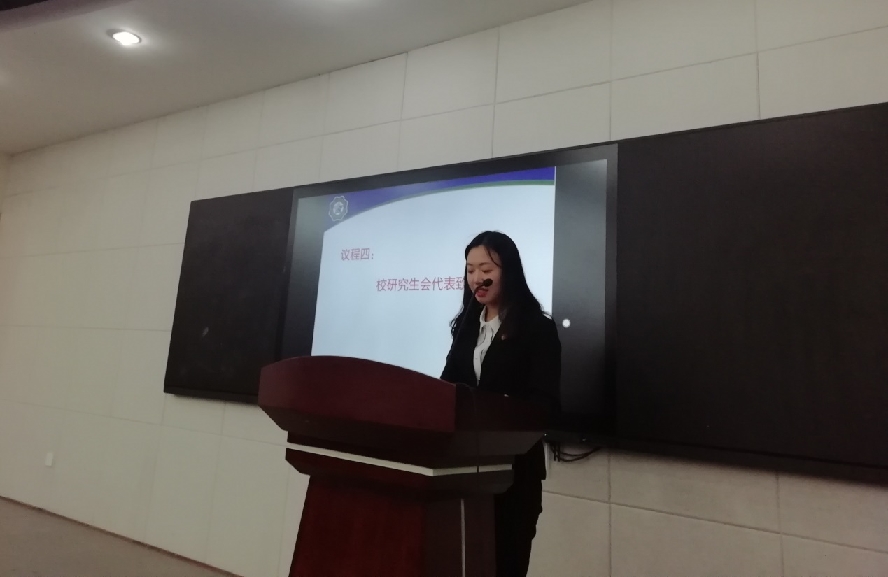 校研会代表杨一帆同学代表校研究生会发表讲话。她指出,a片免费看 研究生会的各项工作都交出了满意的答卷,在思想引领、学术科研、社会实践等多个方面取得了优异的工作成绩。同时,她希望a片免费看 研究生会紧跟时代步伐,进一步加强组织建设,不断创新工作思路,着力提高服务水平,努力开创研究生会工作的新局面。
