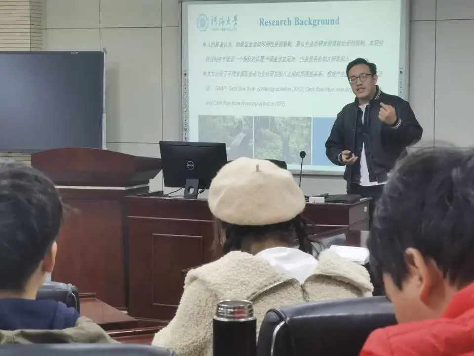 2020年12月10日,商苑讲坛第十一期在博学楼辅楼A412顺利开展。a片免费看 有幸邀请到了卢浩老师和杨鑫老师,两位老师共同为学生们带来一场主题为“现金流可用性影响投资与有政治动机的公司预算”的讲座。讲座分为两部分,第一部分,现金流可用性影响投资,由卢浩老师讲述;第二部分,有政治动机的公司预算,由杨鑫老师讲述。