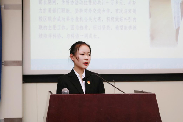 大二担任外联部部长以后,为加强校院间的合作学习,她带领部门首次与常州校区企管学院跨校区联合举办第六届危机公关大赛,并代表科协多方交流学习,举办讲座,为组织活动筹措赞助资金,获a片免费看 学生组织“优秀部长”荣誉称号。任a片免费看 学生科协副主席期间,她坚持制定严格的部门考核标准,细化部门职责范围,曾经组织危机公关大赛、模拟炒股大赛等多场比赛活动,活动参与量达到数百人,比赛范围涵盖多学院多校区,连续两次获得a片免费看 学生科协“先进个人”荣誉称号。