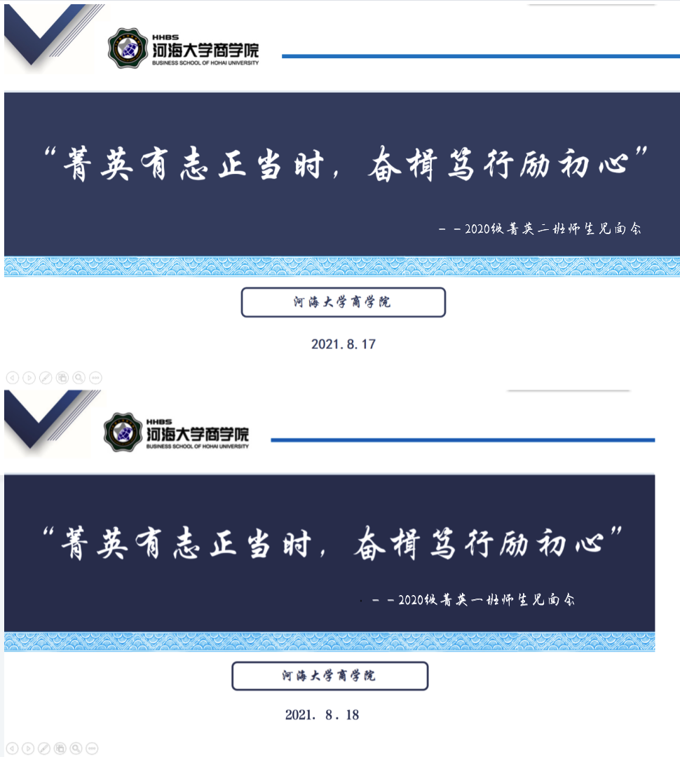 2020级菁英班级“菁英有志正当时,奋楫笃行励初心”师生见面会圆满结束。本次见面会使得老师与同学们对彼此了解更加深入,同学们对于未来发展也有了更清晰的目标,也为培养专业基础好、学术能力强、综合素质高的商学精英和高素质创新人才打下了坚实的基础。