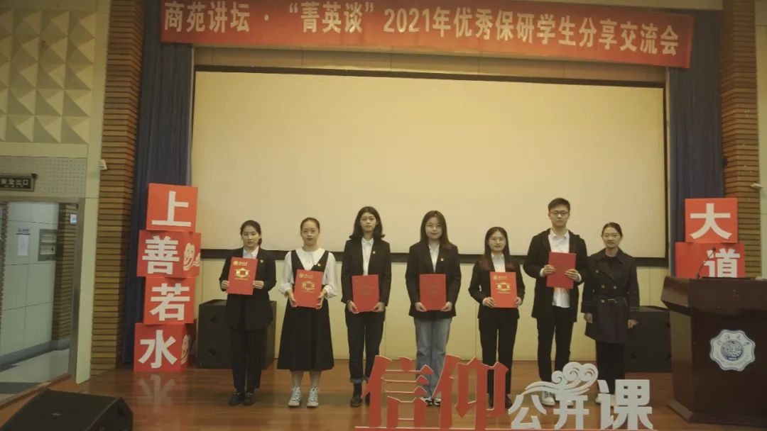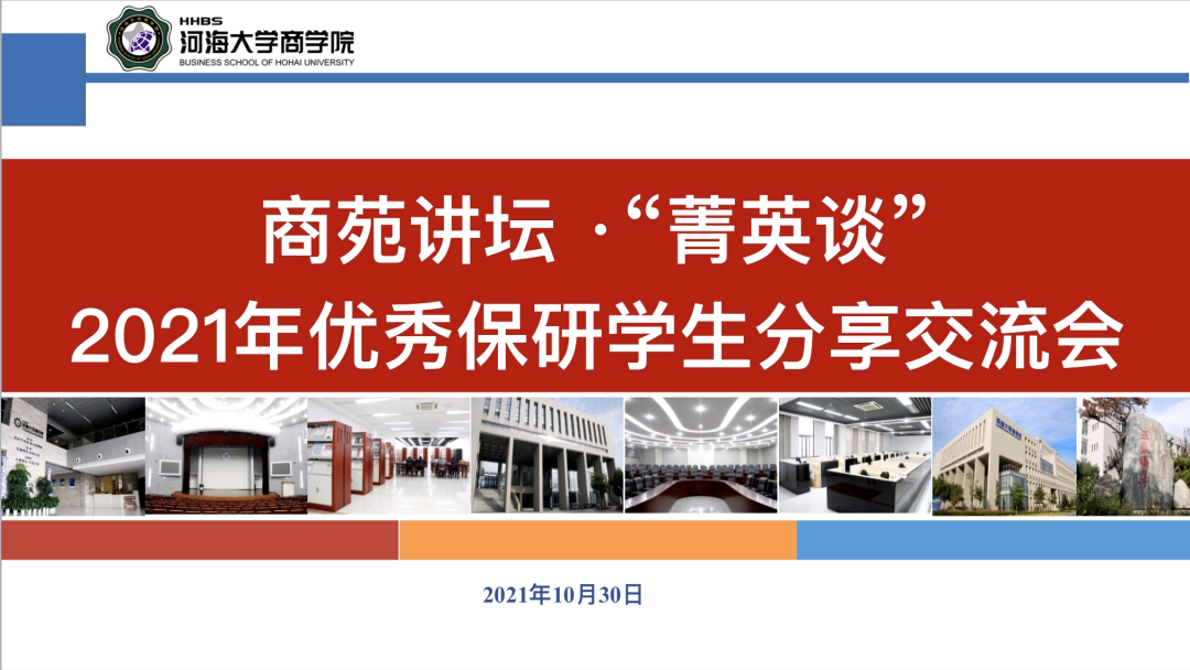遇见商院,预见未来。为加强学风建设,发挥榜样带头作用,引导在校学生刻苦学习、积极探索,培养素质过硬、能力出众的商学人才,a片免费看 设立商苑讲坛系列活动,商苑讲坛分为大咖谈、精英谈、师长谈、菁英谈四个模块。2021年10月30日晚,a片免费看 学生会学习部于江宁会议中心组织举办商苑讲坛·“菁英谈”2021年优秀保研学生专题分享会。