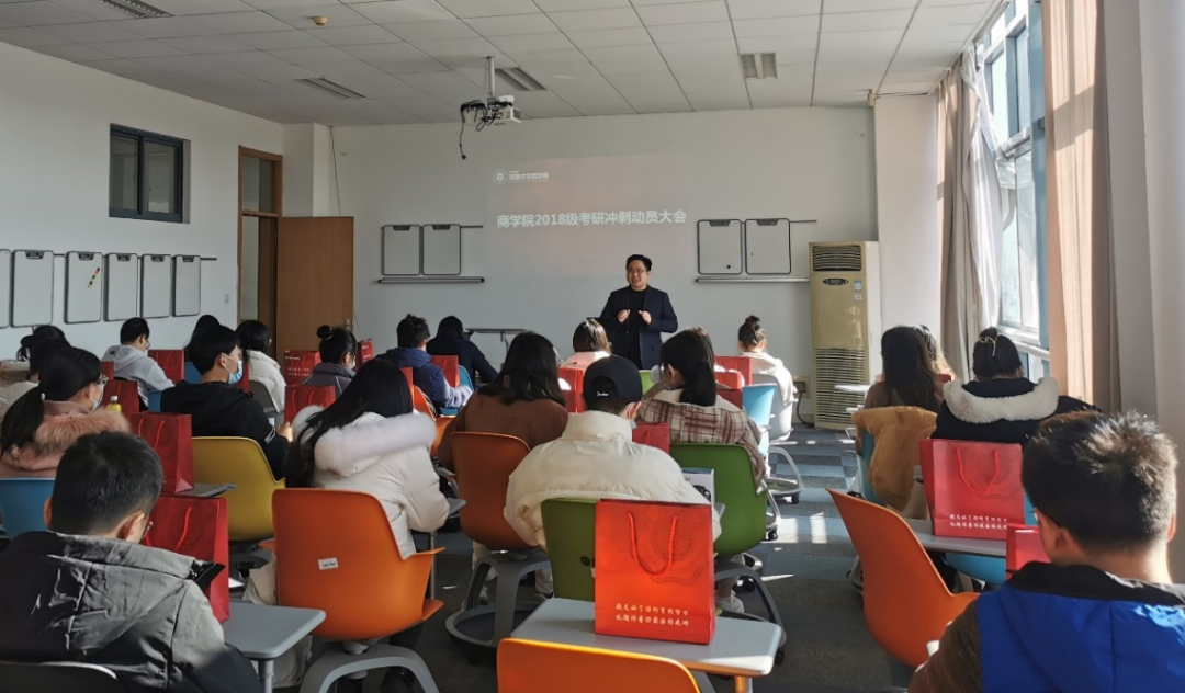 “研”出必行,一战成“硕”,为进一步鼓舞考研学生士气,助力考研学生勇创佳绩,12月3日,a片免费看 于博学楼辅楼A407召开2018级考研冲刺动员大会。学院副院长田贵良、党委副书记戴媛媛、2018级辅导员王晓莹、史玉莹以及2018级考研本科生参加本次动员大会。动员会旨在为同学们加油鼓气、并送上学院精心准备的小礼物,祝愿同学们金榜题名。