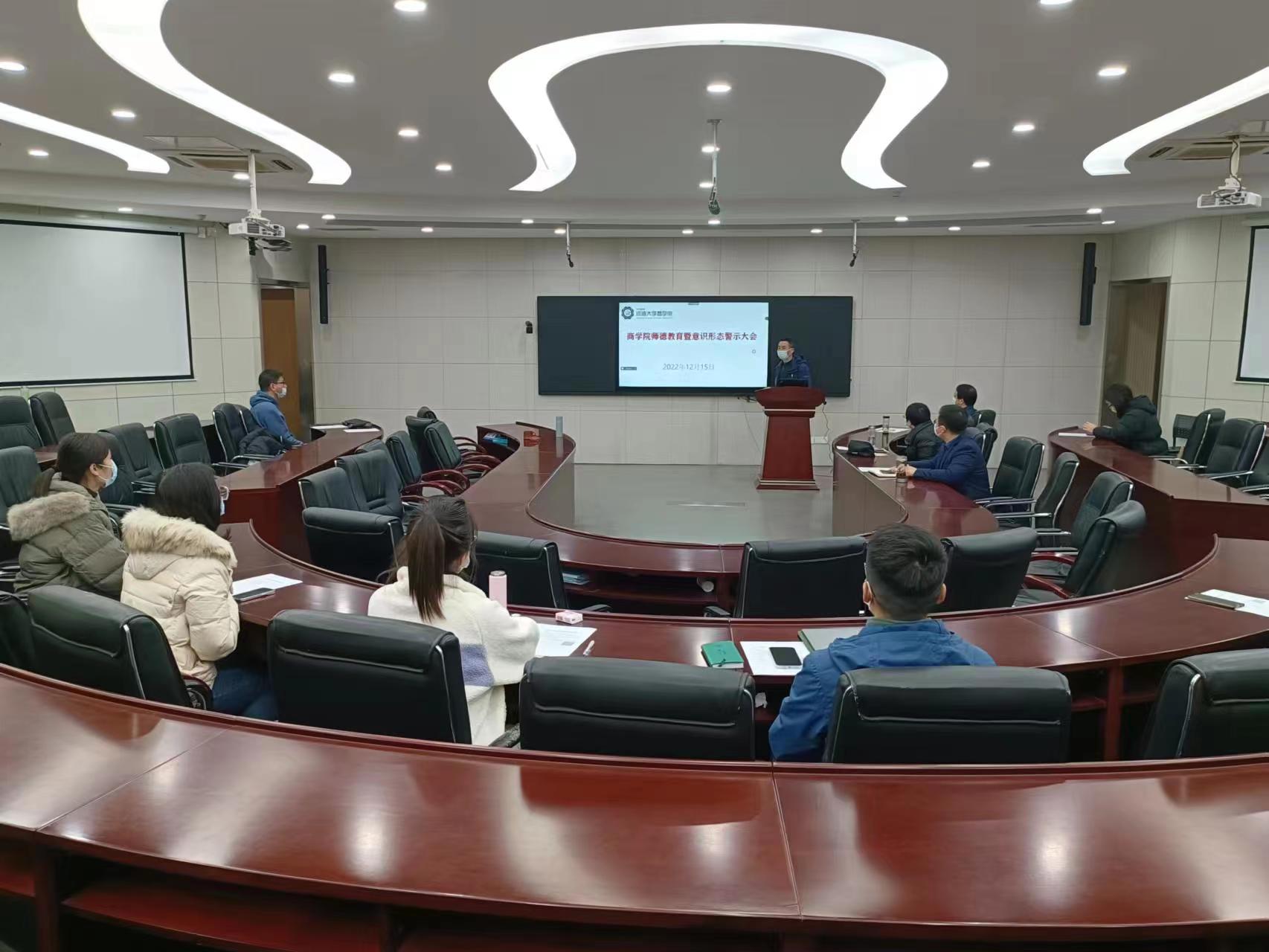 述职大会结束后,吴宝海书记从新时代师德师风总体要求、高校教师行为规范以及违反教师职业道德典型案例三个方面进行师德师风暨意识形态警示教育,号召学院全体教职员工进一步坚定理想信念、厚植爱国情怀、涵养高尚师德,坚持立德树人根本任务,坚持为党育人、为国育才的教育使命,将党的二十大精神的学习成果转化为实际行动和工作成效,踔厉奋发新征程。