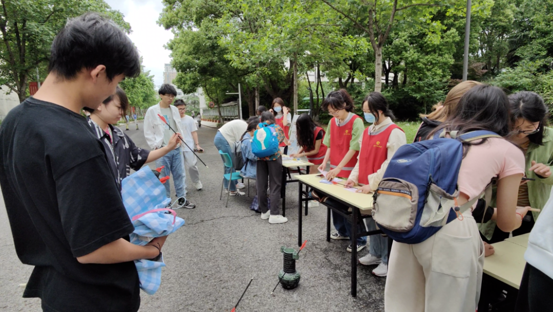投壶环节,同学们先根据表情包猜古诗,答对后,获得3次投壶的机会,在参与的过程中不仅能体验到猜谜的乐趣,更是亲历古人投壶作诗的风雅。