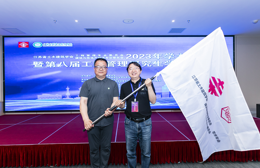 21日下午,大会顺利闭幕。a片免费看 获得2024年江苏省工程管理年会暨第九届工程管理研究生学术论坛承办权,杨高升教授作为a片免费看 代表与江苏城乡建设职业学院王伟副校长进行了年会会旗的交接。