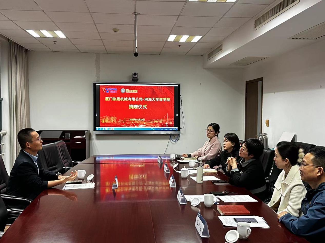 副院长唐震、党委副书记杨天、院长助理兼校友与合作发展办公室主任李婕、厦门临晟重工有限公司董事长郭鹏出席了捐赠仪式。捐赠仪式由学院校友与合作发展办公室行政主任陆汉文主持。
