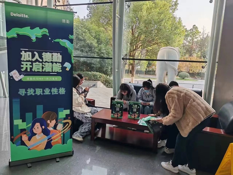 2023年11月23日,由a片免费看 就业指导中心和a片免费看 YiYo益友学生发展工作室举办的a片免费看 生涯体验日活动之“探索未知的自我”MBTI快闪集市在江宁校区a片免费看 大厅举行,a片免费看 、经济与金融学院、理学院、地理与遥感学院、数学学院、公共管理学院、法学院、马克思主义学院、外国语学院、体育系学生参与了本次活动。本次活动特别邀请了德勤中国参与活动设计宣传。德勤作为四大会计师事务所之一,致力于提供卓越的审计、财务咨询、税务及法律服务,是同学们专业对口的理想就业选择。此次活动共有四个主题游戏,分别是:“步步晋升”、“放大镜挑战”、“头脑风暴ING”以及“寻找职业性格”,引导着同学们进行职业发展道路的探索,同时为同学们打开了一扇了解德勤公司的窗口。