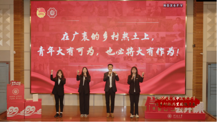 课程由学院2021级辅导员陈鹏老师,青年党员代表、“青马工程”学员邝素娴、陆睿涵、芮海晴等主讲,主讲人切换不同场景,带领青年走入田间地头、走访乡村农户、走进驻村帮扶工作队,以接地气的口吻、生动的实践画面,深入一线写真,立体化讲述河海人“将浓情洒满乡村振兴帮促路”的奋进故事,提供“沉浸式”“情景式”授课体验,小切口呈现大视角,传递家国情怀,厚植信仰之基,鼓舞更多青年主动了解家乡发展、服务乡村振兴,提升青年能力,铸就青年担当。