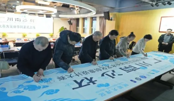 与会专家在大赛方案新华网正式上线横幅上现场签名留念