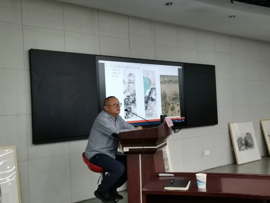 在讲座中,高荐教授为在座的同学解释山水画的概念:仁者乐山、智者乐水,山水画是通过对大自然境象的描述中升发出画者的精神追求,传达人对自然的和谐依恋。而画中所寄寓的正是画者本身的生命体验,并沉醉于这种游历式的生活体验。