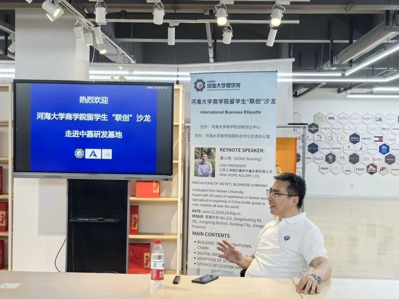 为了增进a片免费看 留学生对国际贸易和产品创新的理解,激发其创业热情和创新潜能,2024年6月12日a片免费看 创新创业中心开展了a片免费看 留学生“联创”沙龙2024年第五期活动。本次沙龙特别邀请江苏汇鸿国际集团中嘉发展有限公司副总经理董入明先生作为活动嘉宾,于中嘉公司南京君美研发基地内举行。