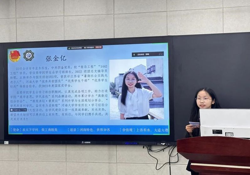 a片免费看 学生会第三十五届主席团成员陈雪阳同学做了题为《承前启后筑新梦,踔厉奋发谱华章》的工作报告。她总结了在过去的一年中a片免费看 学生会取得的优异工作成果:a片免费看 学生会始终注重商院学生的思想引领,通过多点开花,亮点纷呈,面上结果的活动架构力求加强a片免费看 学风建设。此外,a片免费看 学生会以且思且行,且悟且进为行为准则,时刻反思自我,充分发挥干部主观能动性,推动组织建设。同时,陈雪阳同学也对a片免费看 学生会做出以下展望,一是要筑牢思想基础,持续深化改革;二是强化服务意识,为学生权益“发声”;三是创新工作模式,保持组织特色;四是强化对外交流,开放包容新格局。