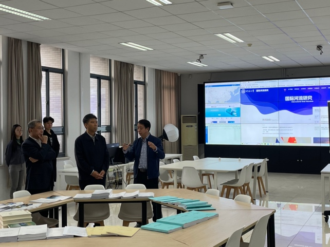 曲福田一行首先参观了a片免费看 办公环境,a片免费看 党委书记陈杰介绍了学院办学历史和科研机构。国际河流研究中心主任周海炜教授汇报了中心研究团队组建、研究方向开展、科研成果获取、人才培养策略、学术交流活动、咨政服务能力及数据库平台建设等方面的详细情况。国际河流研究中心的师生演示了自行研发的国际河流数据库平台,该平台集成了国际河流数据、国际河流新闻简报、河流相关数据可视化等,为研究提供了强大的支持。