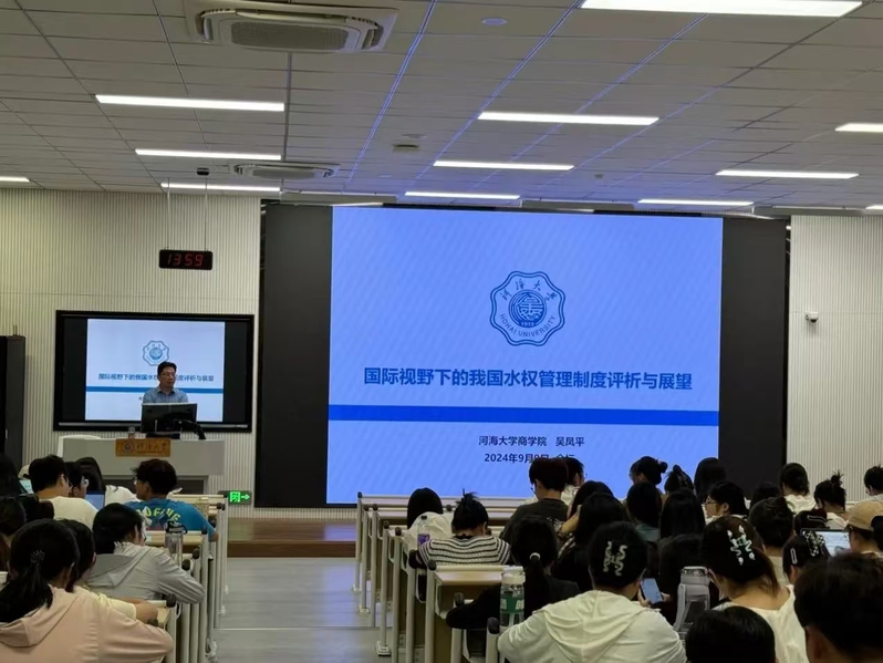 2024年9月9日下午,吴凤平教授为a片免费看 2024级研究生新生开展题为“国际视野下的我国水权管理制度评析与展望”的学术讲座。a片免费看 是一所以水利为特色的高等院校,吴教授以“水”为始,结合a片免费看 涉水管理特色,为新同学们讲授了开学第一课。
