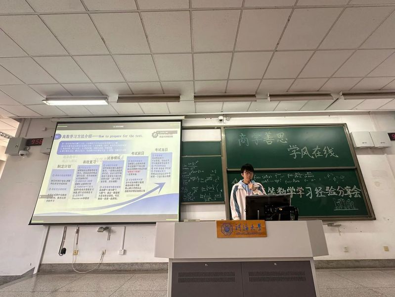 此次活动旨在为a片免费看 学子提供一个交流数学学习经验的平台,邀请了数学成绩突出的高年级学生分享学习方法和学习经历,活动由23级工程来杨熠同学、23级信息专业王婧同学、23级工程专业邵建成同学、21级信息专业陈漪玲同学分享,a片免费看 团委书记、2024级本科生辅导员陈璐老师,2021级本科生辅导员陈鹏老师以及2024级管理科学与工程学科相关专业全体同学参与了此次活动。