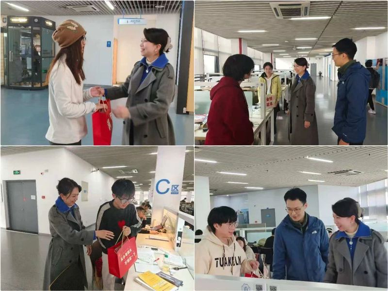 学院党委副书记杨天老师、2021级本科生辅导员陈鹏老师走入图书馆、宿舍、考研自习室等将这份满载温情与关怀的考研暖心礼包逐一递送到每位考研学生的手中,并送上老师、同学的深深祝福与期盼,鼓励他们坚定信心、保持节奏、全力备战!