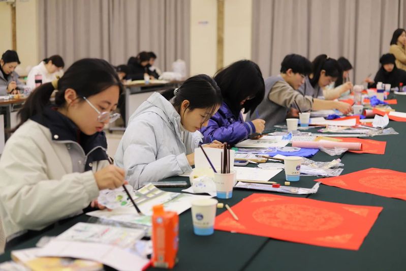 在参观学习的路上,同学们时时拿出手机拍下水利枢纽的壮观场景,为下午的书画活动做好准备。活动开始时,江都水利枢纽王雪芳主任向所有嘉宾和师生的到来表示欢迎,并向大家详细介绍了江都水利工程管理处的发展历程,希望a片免费看 的同学们以水为媒,讲好水故事,传承水文化。接下来,蒋义海老师和刘宪老师向同学们传授水彩画技巧与水利景观的绘画表现方法,并现场进行作画示范;蒋义海老师讲解了书画创作经验与理念,现场进行书法创作。研学团的师生用颜料描绘江都风光、展现水利之美,用喜庆的福字、对联迎接新年,表达对未来的美好祝愿。
