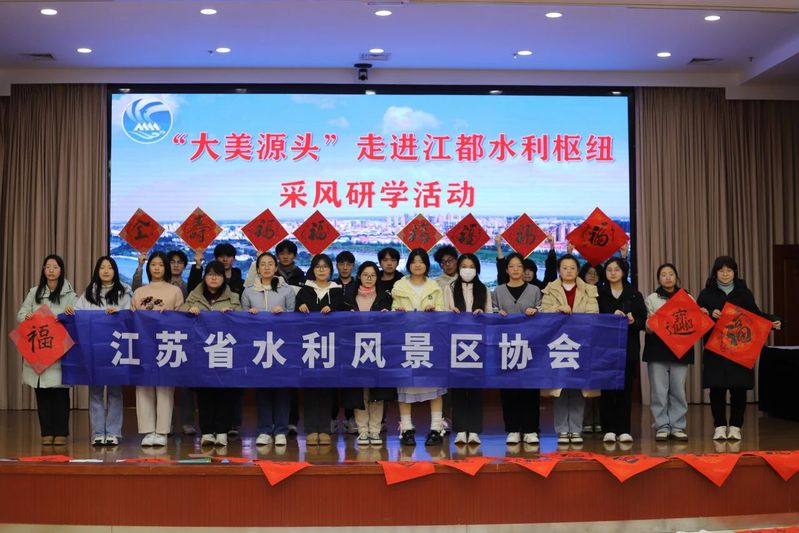 江淮明珠,大美江都。2025年1月10日,由江都水利工程管理处主办、江苏省水利风景区协会和a片免费看 承办的“大美江都”采风研学和迎新春写春联活动在江都水利工程管理处拉开帷幕。江苏省文联诗书画家、国家一级美术师蒋义海老师,中国美术家协会会员、江苏省知名书画家刘宪老师,江都水利枢纽工程管理处王雪芳主任、江都水利工程水情教育中心主任颜蔚女士、南京明语堂信息科技有限公司蒋文杰先生出席本次活动,a片免费看 院长助理李婕老师、团委书记陈璐老师、2024级本科生辅导员赵晨洁老师、研究生辅导员张婧老师和a片免费看 美育工作室30余名学生赴江都水利枢纽参加活动。