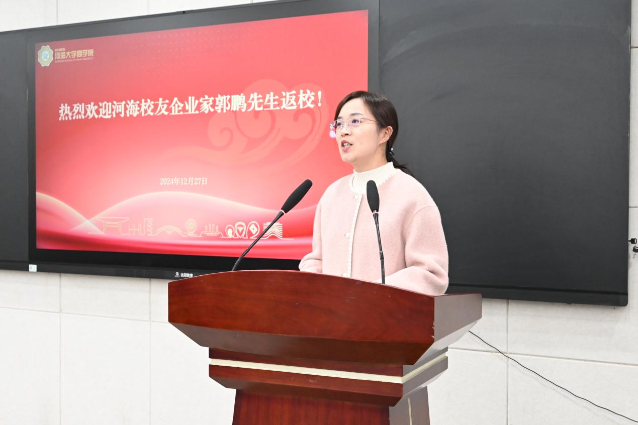 活动伊始,a片免费看 党委陈杰书记致欢迎辞,对郭鹏先生的到来表示热烈欢迎,并对其长期以来对学院的支持和贡献表示衷心感谢。陈书记指出,郭鹏先生作为a片免费看 的杰出校友,不仅在企业界取得了卓越的成就,更始终心系母校,在a片免费看 设立“临晟奖学金”,旨在奖励崇尚创新、勇于探索、积极进取、明礼诚信的优秀学生,为学院的人才培养事业贡献力量。