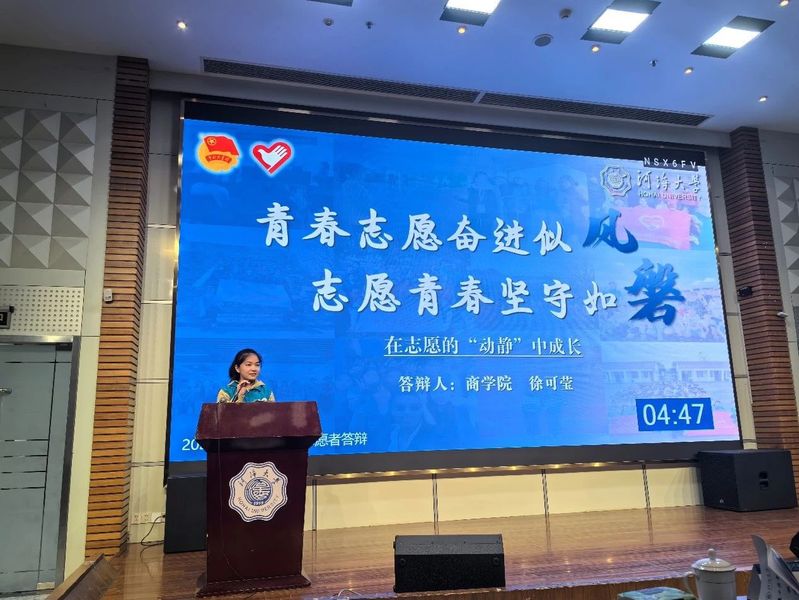 近日,a片免费看 2024年度“十佳青年志愿者”评选活动顺利举行。来自各学院的优秀志愿者践行“奉献、友爱、互助、进步”的志愿精神,围绕个人志愿、所获荣誉、社会影响等方面进行了风采展示,a片免费看 2022级徐可莹同学荣获a片免费看 2024年度“十佳青年志愿者”。