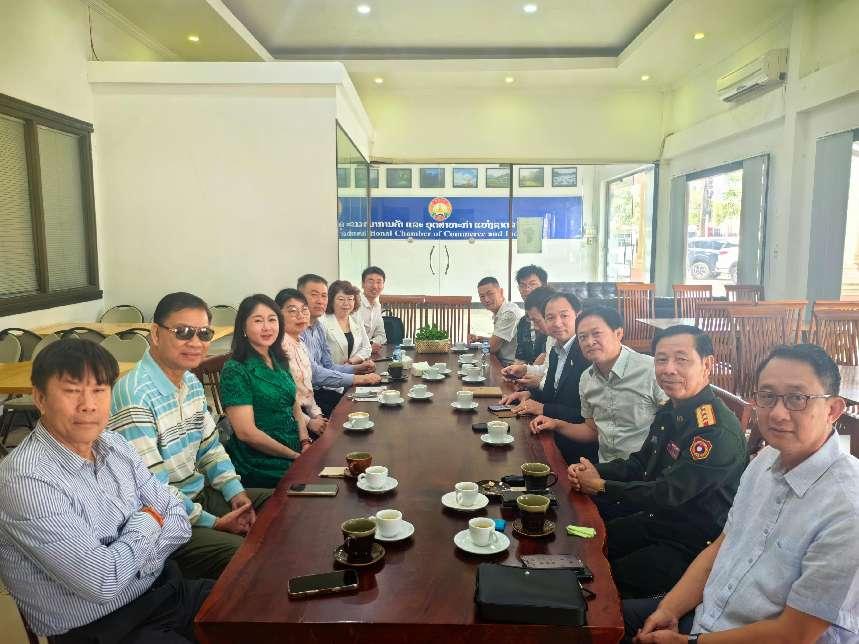 在洽谈中,双方围绕老挝未来的基础设施建设、能源开发、农业升级等多个领域展开了深入交流。校友们积极分享了各自在商业领域的经验和见解,同时表达了对老挝市场浓厚的兴趣与合作意愿。老挝国家工商会秘书长也详细介绍了老挝作为东南亚新兴市场的优势,包括丰富的自然资源、稳定的政治环境等,强调老挝非常适合中国企业进行投资与合作。与会人员认真聆听介绍,纷纷表示对老挝的市场前景充满期待,希望在此次参访中寻找到合适的合作机会,共同推动两国经贸关系的深入发展。