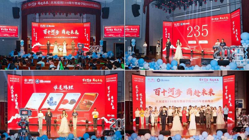 晚会分为“入海·涓流汇聚”、“激荡·奋楫逐光”、“奔涌·青春华章” 三个篇章,青春汇聚、点燃梦想,共同“商”赴新同学们与百十河海的青春华章!