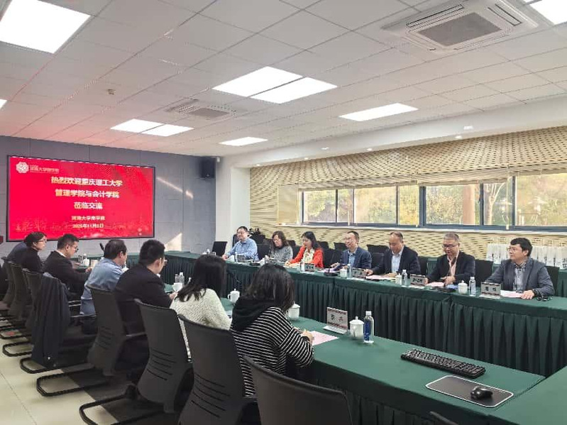 11月5日下午,重庆理工大学管理学院党委书记阎建明、院长代应,会计学院党委书记邹霞、院长王波一行七人莅临a片免费看 交流座谈。院领导张长征、陈杰、李弘扬、张恒杰、杨天,以及会计系、MBA教育中心、MPAcc教育中心教师代表共同出席会议。