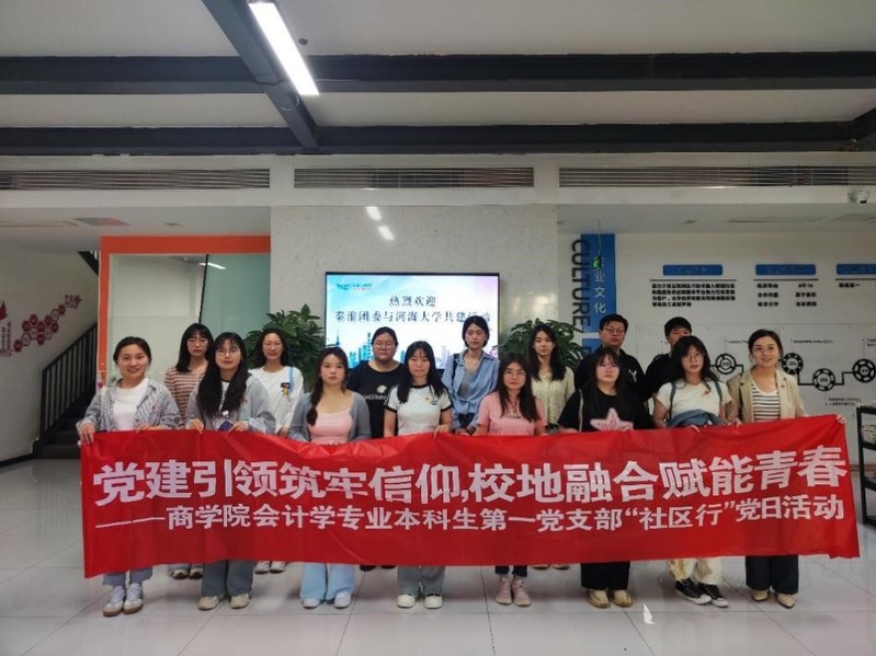 In order to deepen the understanding and understanding of modern science and technology industrial parks among student party members, promote the integration and co construction with the Qinhuai District Youth League Committee, and implement resource sharing between the school and the local area, on May 15th, Chen Lu, Secretary of the Youth League Committee of the Business School, Wei Junmei, Secretary of the First Party Branch of Accounting Undergraduate Students, as well as student party members and active members of the branch, went to Shimenkan Community to carry out the Community Tour themed party day activity.